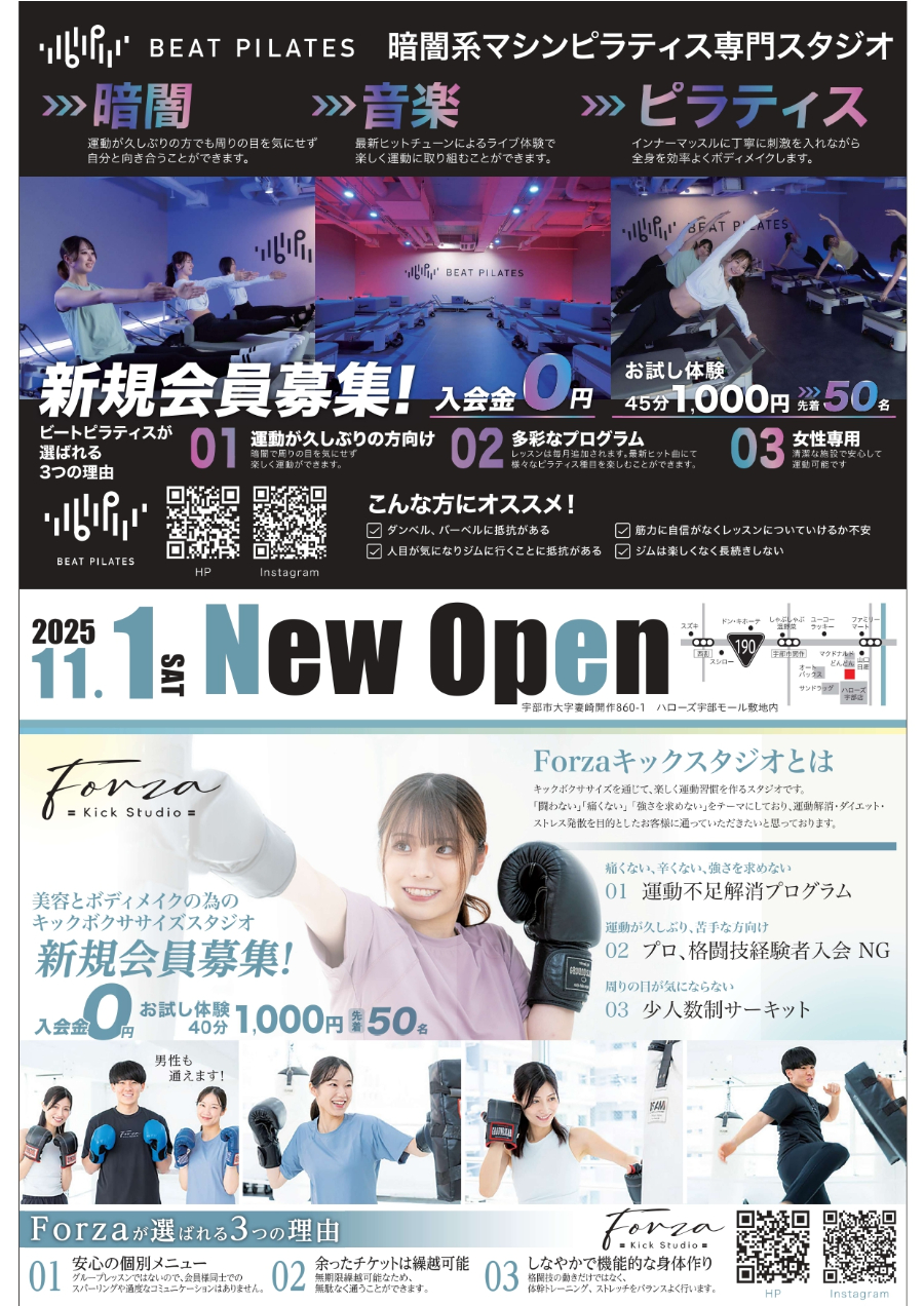 暗闇系マシンピラティス「Beat Pilates」&キックボクシングスタジオ「FORZA キックスタジオ」。