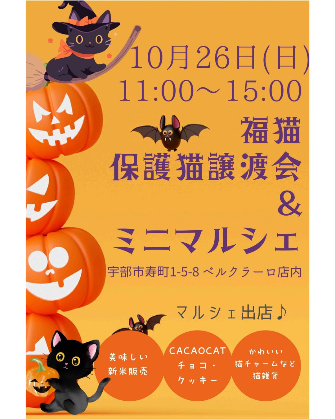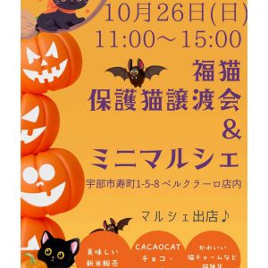 「福猫 保護猫譲渡会&ミニマルシェ」が10月26日、宇部で開催されます。