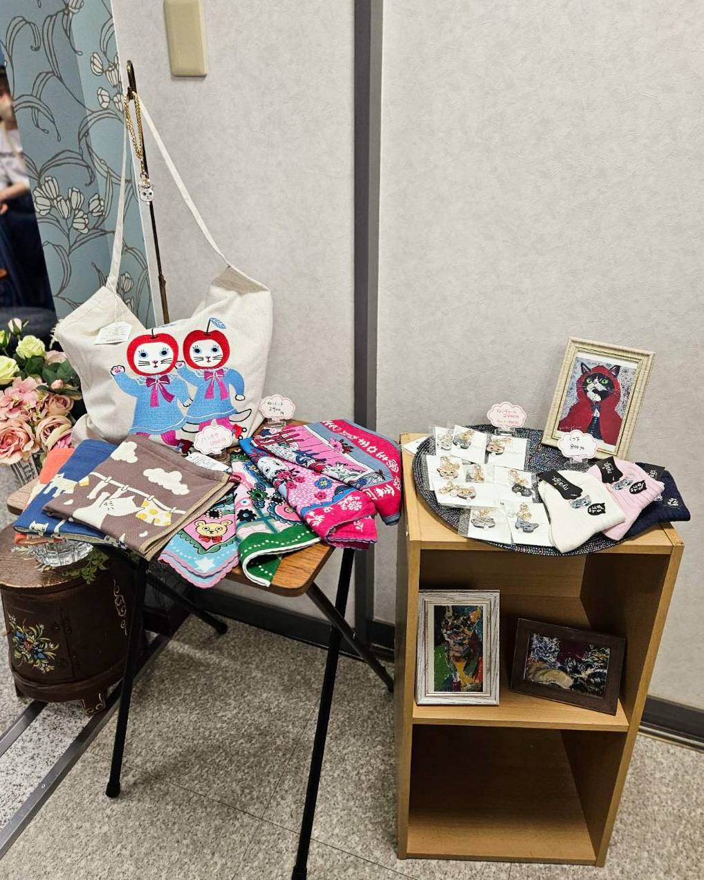 さらに、刺繍猫のバッグチャームや靴下、ハンカチなど、売上の一部が保護活動に使われる雑貨も販売します♪