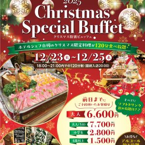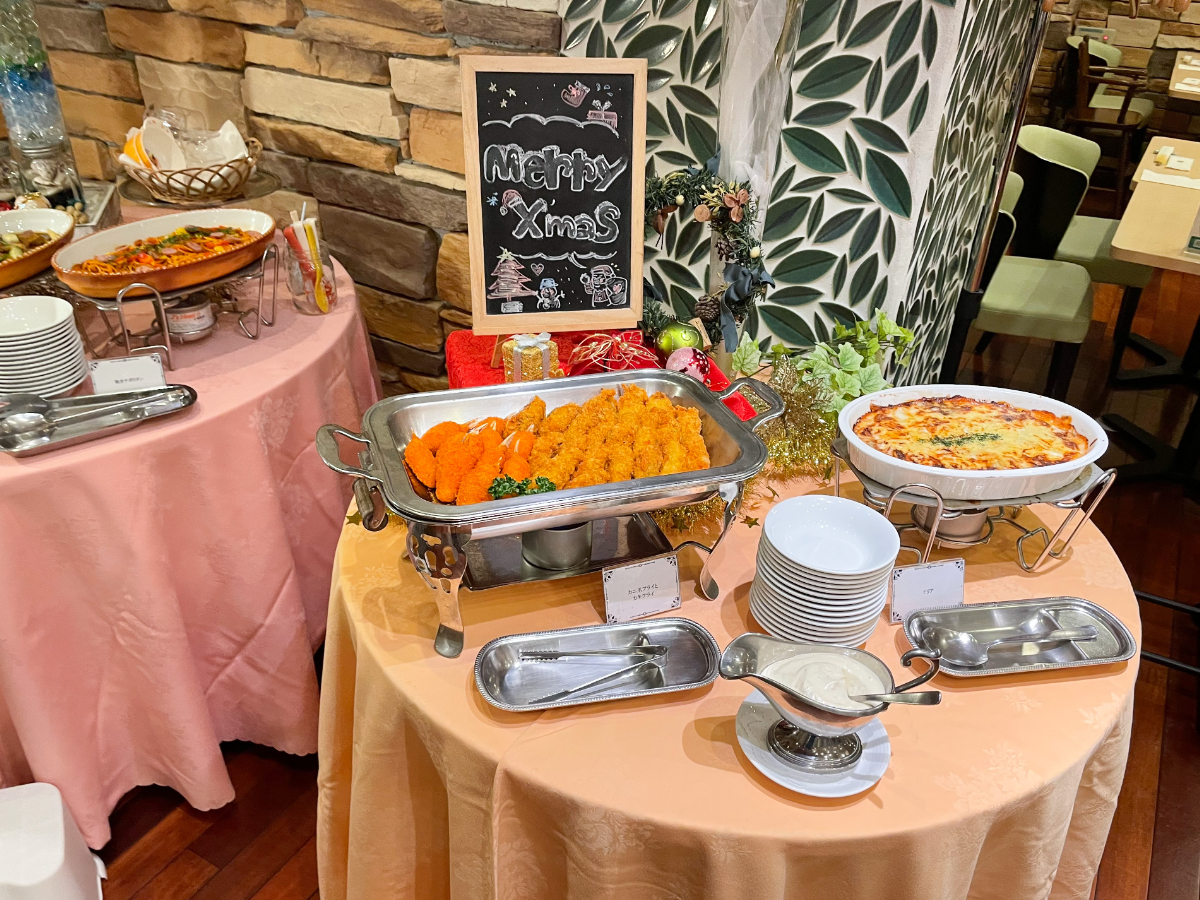 シェフ自慢のクリスマス限定料理。ビュッフェを120分食べ放題で楽しめます。