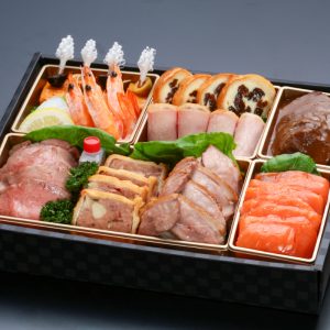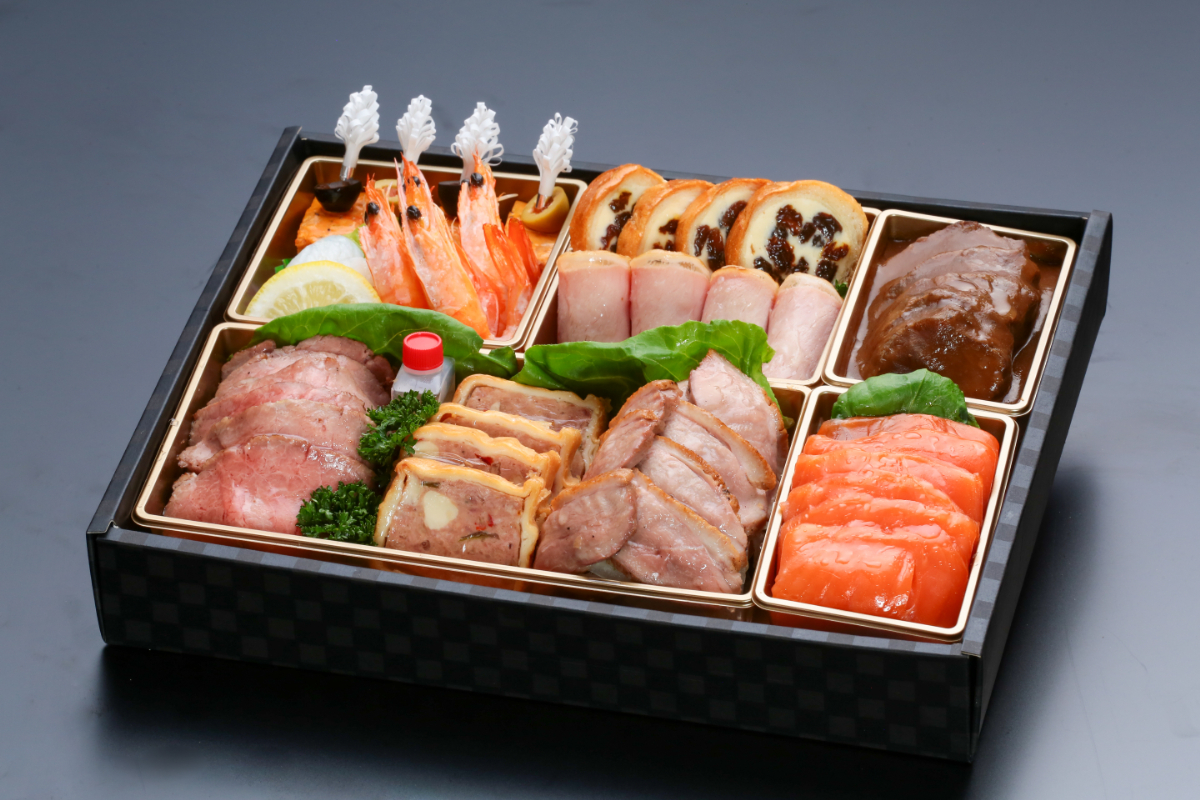 ほかにも「ローストビーフ」や毎年好評の「牛ホホ肉の赤ワイン煮」など、シェフの技が光る逸品が並びます。海と大地の恵みをバランスよく盛り込んだ、彩りと食感豊かな大人のためのオードブルです。