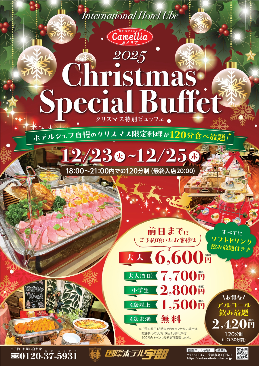 国際ホテル宇部のレストラン「カメリア」の今年の「クリスマス特別ビュッフェ」は、誰もが楽しめる特別なホテルビュッフェ。