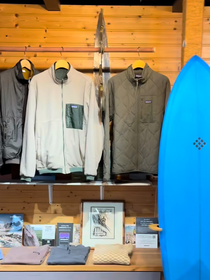 アメリカのアウトドアブランド「Patagonia(パタゴニア)」のウェア、ハワイ発「RONIN」のサングラスなどを展示販売