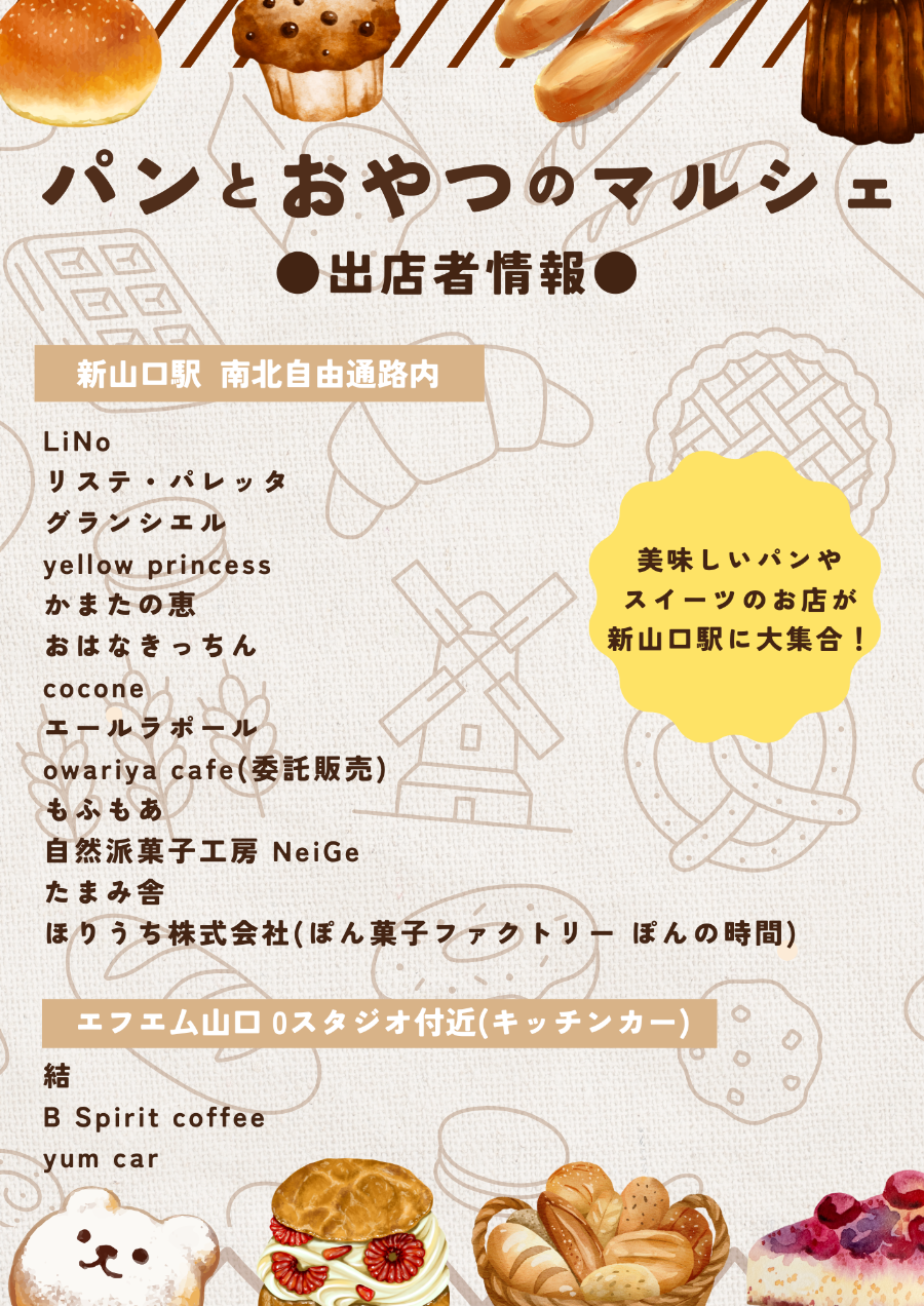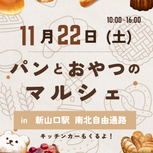 JR新山口駅の南北自由通路で11月22日、「パンとおやつのマルシェ」が開催されます♪