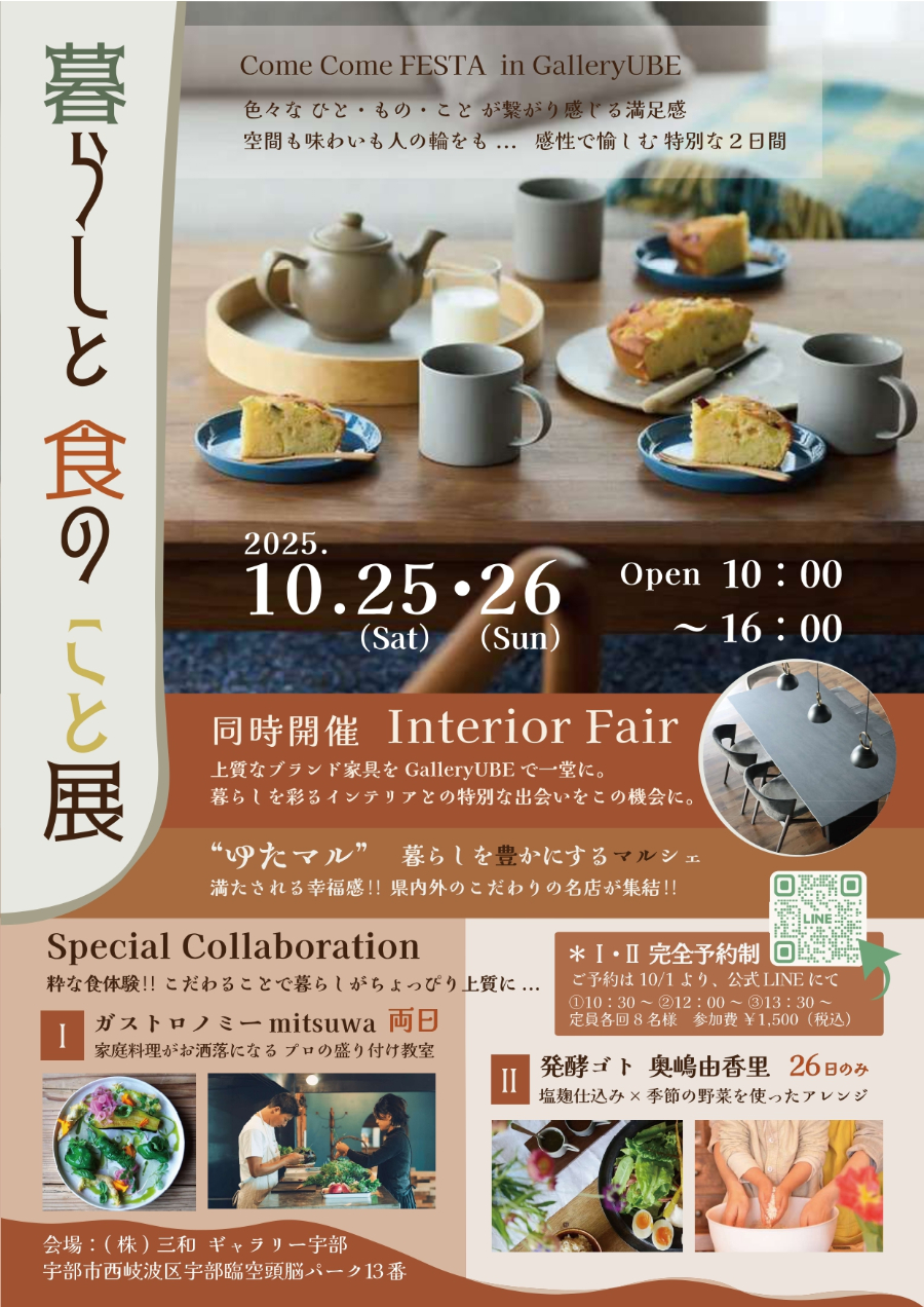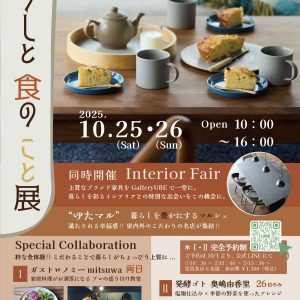 インテリアセレクトショップ「Gallery宇部」では10月25日・26日(日)、「ComeComeFESTA in Gallery UBE -暮らしと食のこと展-」が開催されます。