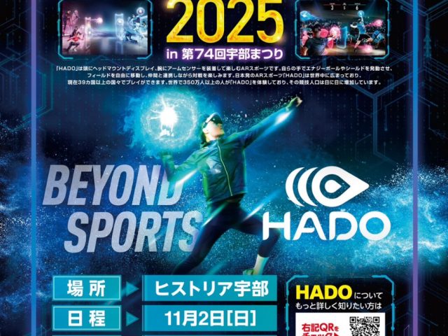 イベント情報 「宇部HADOフェス2025」で話題の新スポーツを体験!(2025/11/2) //昨年は2,000人が体験した人気イベントが今年も!\\話題の新スポーツが体験できる「宇部HADOフェス2025」が11月2日、ヒストリア宇部で開催されます。■「HADO」とは?AR(拡張現実)技術を使い、自分の手からエナジーボールやシー... 2025.10.23 イベント情報