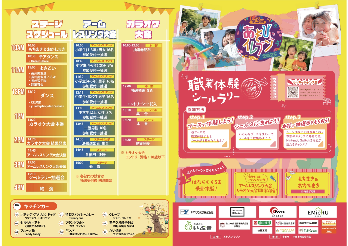 宇部の恩田スポーツパークで10月18日、職業体験イベント「あそびにイレブン」が開催されます。