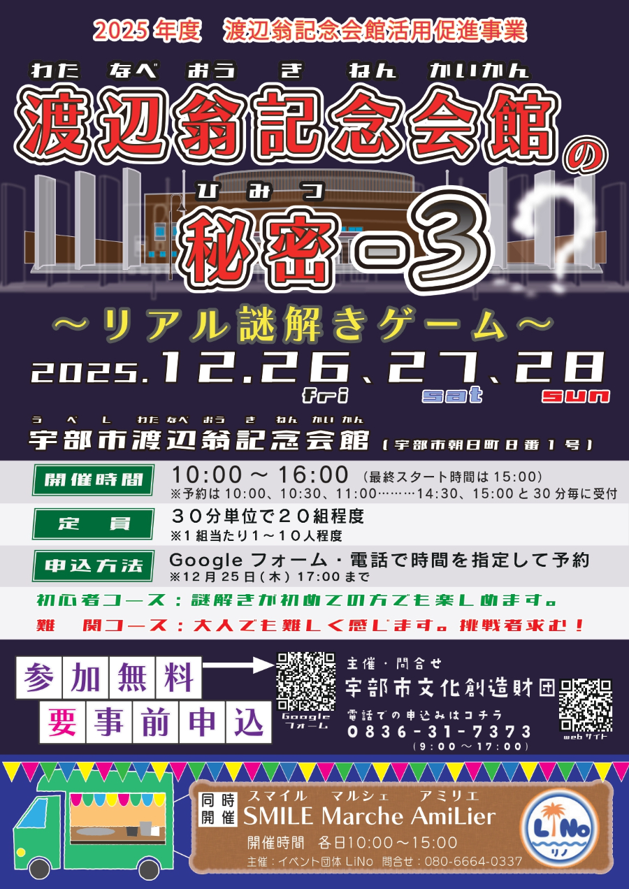謎解きイベント「渡辺翁記念会館の秘密-3~リアル謎解きゲーム~」が12月、宇部で開催されます。