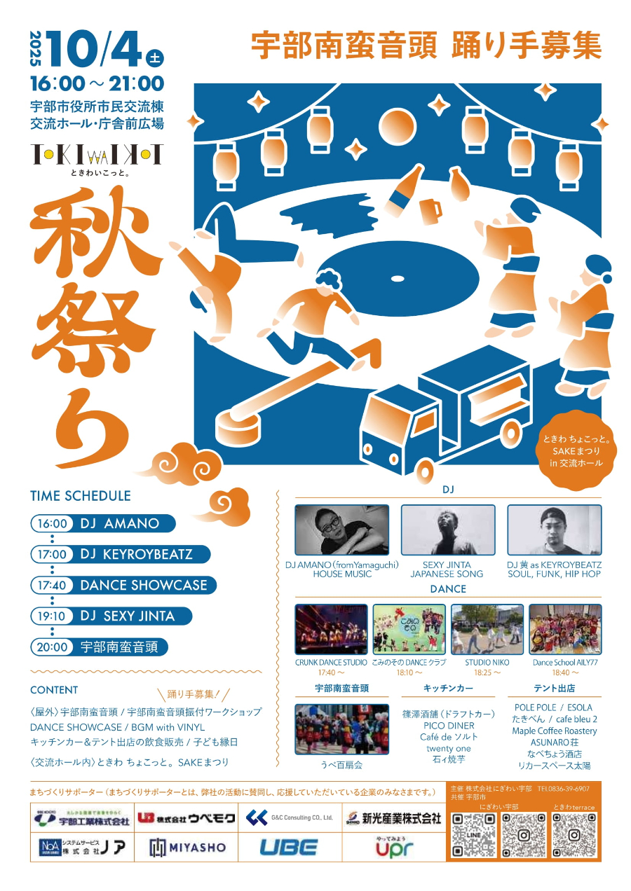 宇部の中心市街地で10月4日、「ときわいこっと。秋祭り」が開催されます。