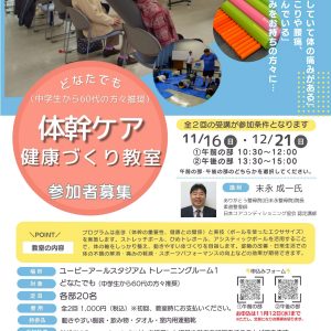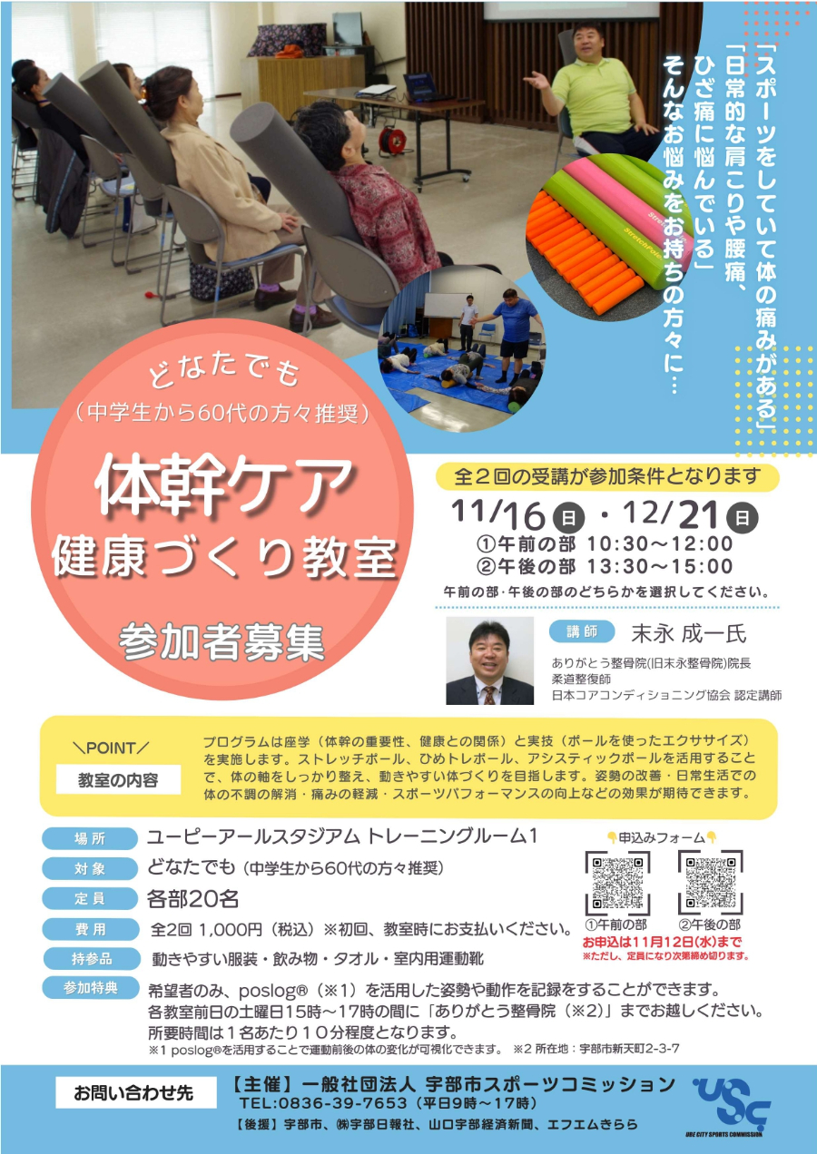 宇部で「体幹ケア健康づくり教室」が開催されます。現在、参加者を募集中。
