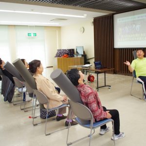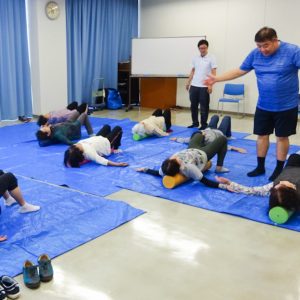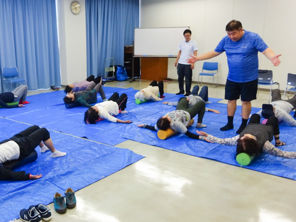 体幹の重要性や健康との関係を学ぶ座学と、ポールを使ったエクササイズを行うプログラム。