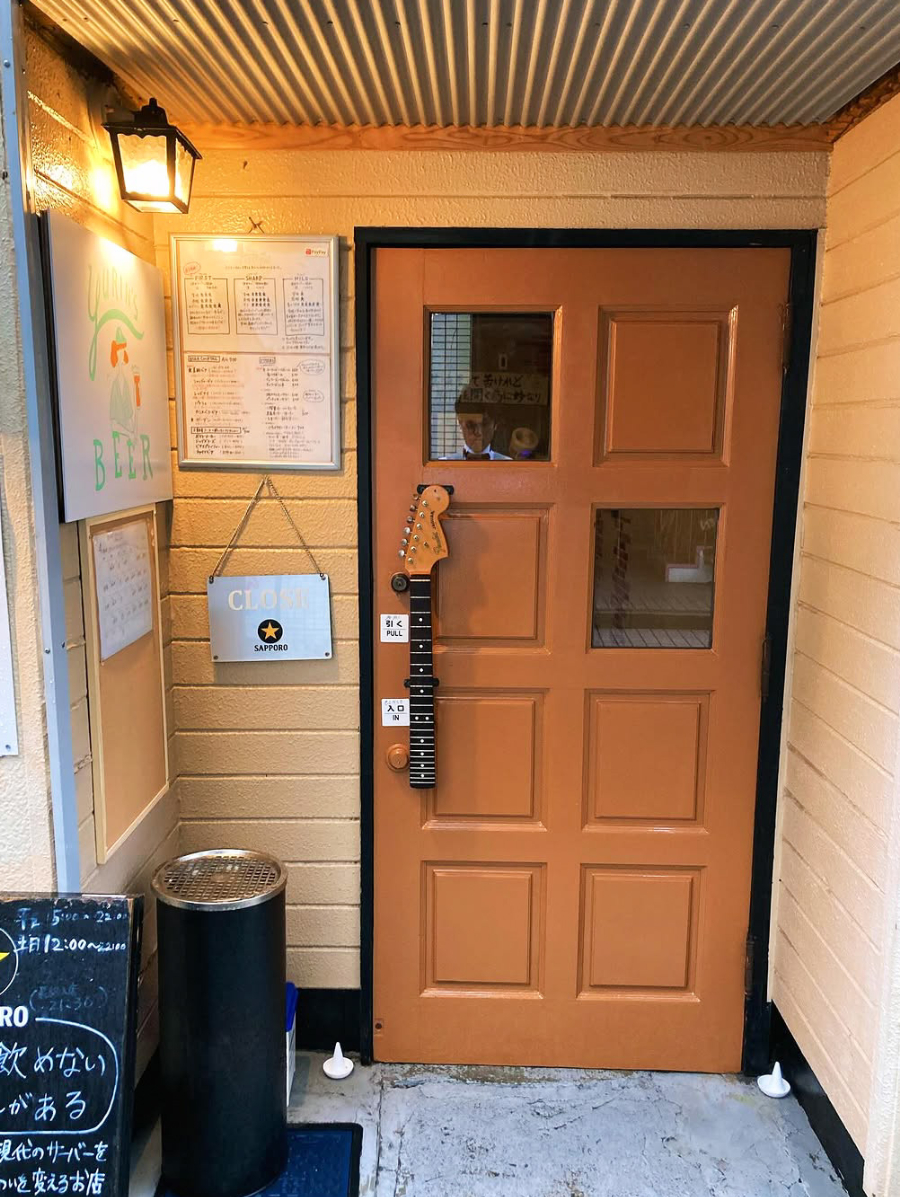 ――お店の入り口の扉のドアノブがギターネックになっていますが、こちらはバンドマン時代に使われていたものですか?